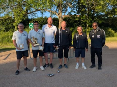 Le 06/02/2025 Triplette Vétérans les Bughes: Notre triplette " Christian L, Pascal D et Richard P perd en demi-finale du A à la pièce