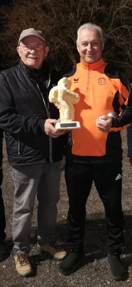 Doublette Puy St Romain 25/03/2025 : 32 équipes au départ. Jeannot et Pascal gagnent le A et ramènent le challenge à la FACC.