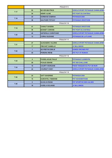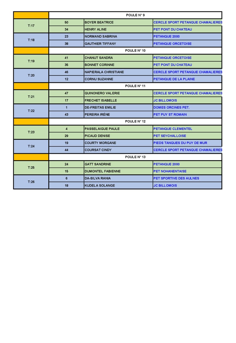 Cliquez sur la page désirée pour agrandir : noter bien votre numero d'équipe (col 2), votre poule et votre terrain (col 1)