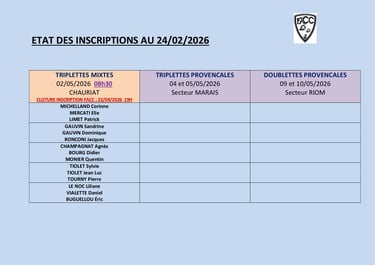 Tirage éliminatoires Triplettes Vétérans PDD à Riom le 17/04/2025