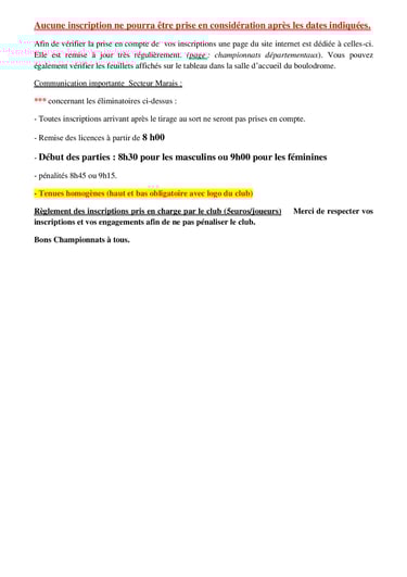 Préliminaires TAT masculins et Doublettes Féminines le 22/04/2023 Pont du Chateau